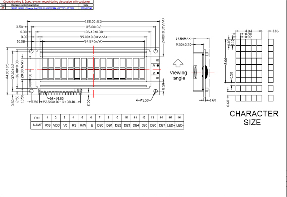COB BC-1602B-SAGA-N-B B00 STN (Gray) 122*44*10.5 99*24 94.84*20 0.92*1.10 NO ST7066+ST7065